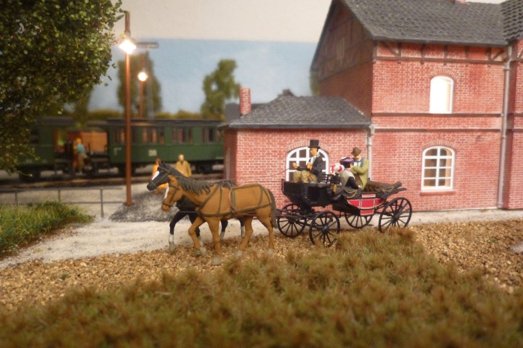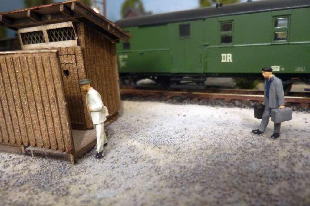 Völli unschuldige Szene auf der Modellbahnanlage: Juni 1963, Staatsbesuch (offiziell Arbeitsbesuch) des jungen amerikanischen Präsidenten John F. Kennedy beim deutschen Bundeskanzler Konrad Adenauer, eigentlich noch ein Vertreter der wilhelminischen Zeiten und nicht mehr lange in seinem Amt. Höchstwahrscheinlich beide auf dem Weg zu einem Sonderzug-Salonwagen (in dem schon Goebbels saß), um aus der Provinz wieder nach Bonn zu gelangen. Der Jubel der Deutschen muss unbeschreiblich gewesen sein, wenn man den offiziellen Quellen folgt und sich den sehenswerten Wochenschau-Bericht ansieht, Kennedy-Rufe aus Hundertausenden Kehlen….