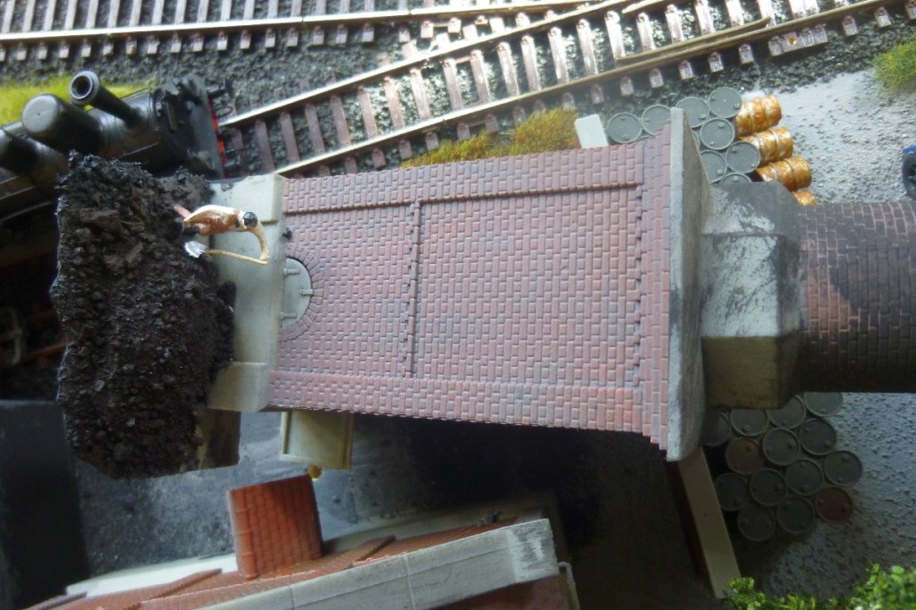 Let’s have a look at the left hand side of the display, where there is a station building with freight yard, coal merchant etc. as well as some workers‘ houses and a smaller factory building all sorts of machines, of course with a track in the yard to export their products.