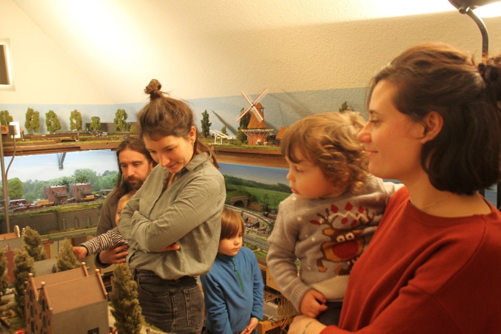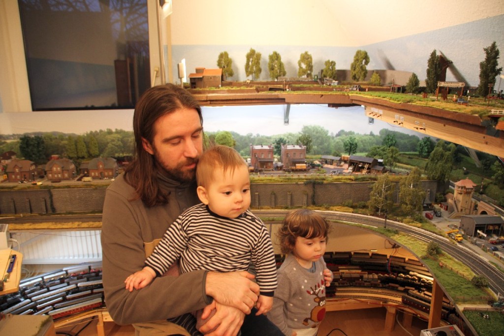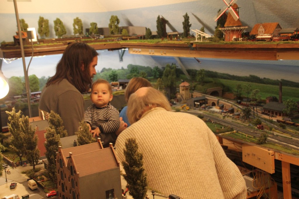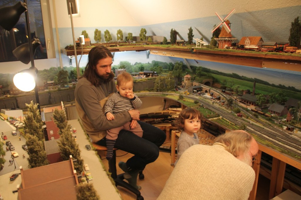 Völli unschuldige Szene auf der Modellbahnanlage: Juni 1963, Staatsbesuch (offiziell Arbeitsbesuch) des jungen amerikanischen Präsidenten John F. Kennedy beim deutschen Bundeskanzler Konrad Adenauer, eigentlich noch ein Vertreter der wilhelminischen Zeiten und nicht mehr lange in seinem Amt. Höchstwahrscheinlich beide auf dem Weg zu einem Sonderzug-Salonwagen (in dem schon Goebbels saß), um aus der Provinz wieder nach Bonn zu gelangen. Der Jubel der Deutschen muss unbeschreiblich gewesen sein, wenn man den offiziellen Quellen folgt und sich den sehenswerten Wochenschau-Bericht ansieht, Kennedy-Rufe aus Hundertausenden Kehlen….